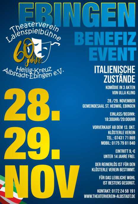 Aufführungen in St. Hedwig: Vorverkauf ab dem 13. Oktober beim Klösterle-Verein!