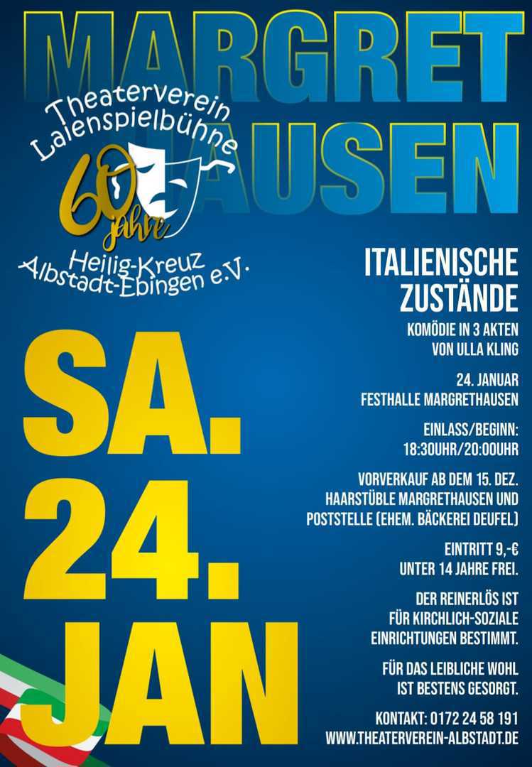 Aufführung in Margrethausen: Vorverkauf ab dem 15. Dezember im Haarstüble und bei der Poststelle!